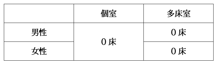 当施設の空床状況は下記の通りです。詳細につきましては、支援相談員にお問い合わせください。